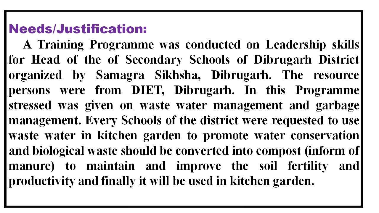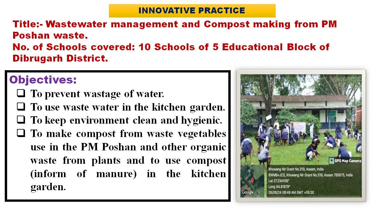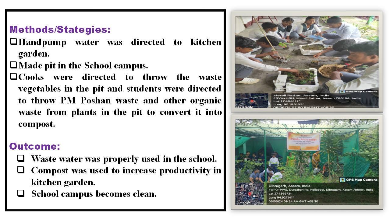 Title:- Wastewater management and Compost making from PM Poshan waste.No. of Schools covered: 10 Schools of 5 Educational Block of Dibrugarh District.