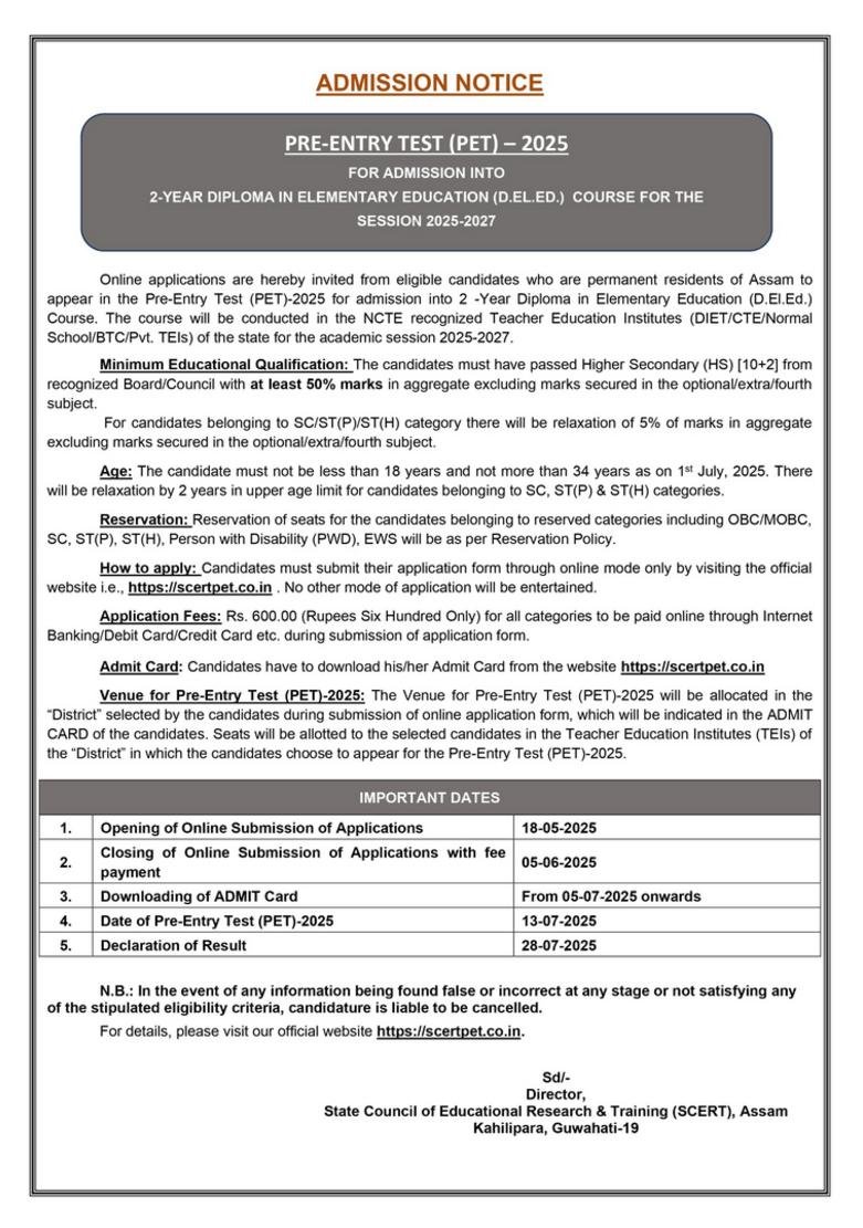 0104 2025Admission Notice for Pre Entry Test (PET), 2025