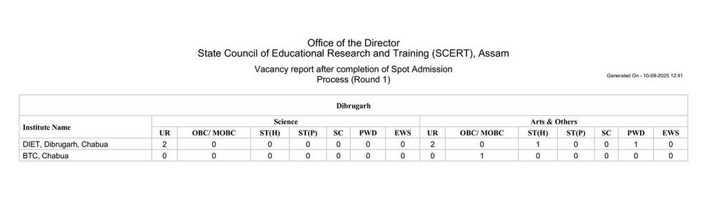 1009 2025Vacancy report after completion of Spot Admission Process (Round 1)